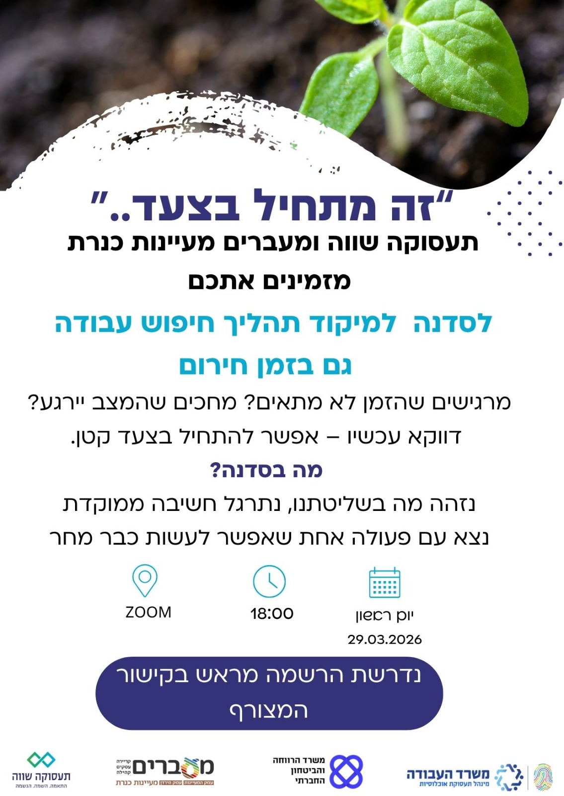 מוזמנים לפנות אלינו בנושאים הבאים: ייעוץ ופיתוח קריירה, יזמות עסקים מקומיים, פיתוח קהילתי כלכלי